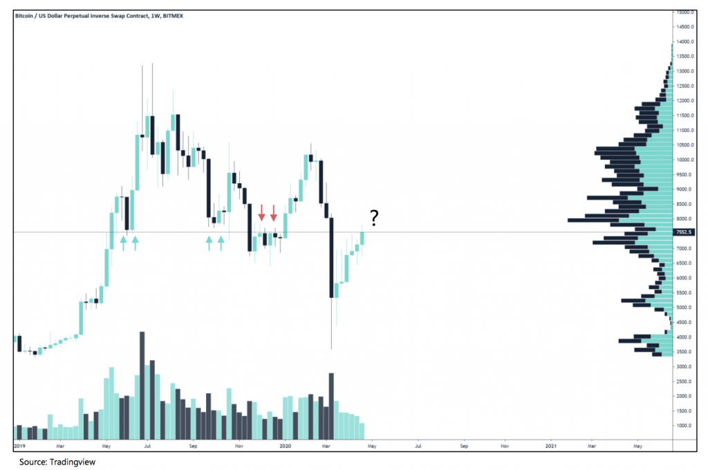 At the same time, the bears are looking for a close below the same level, and the first red weekly candle since the market crash in mid March to set them on their way to lower BTC prices.
